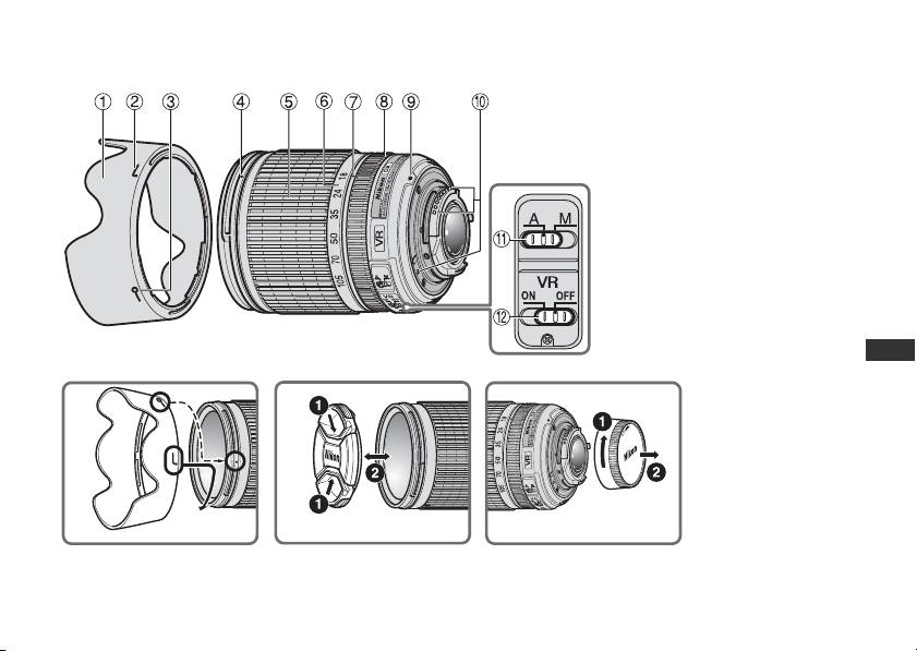 - Focusing (Fig. A) Detaching the hood Focusing, zooming, and depth of field