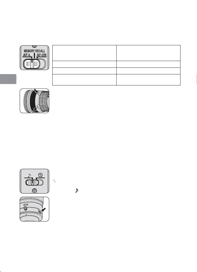 • Objektivet återgår från minnesåterkallning till autofokus eller manuellt fokus