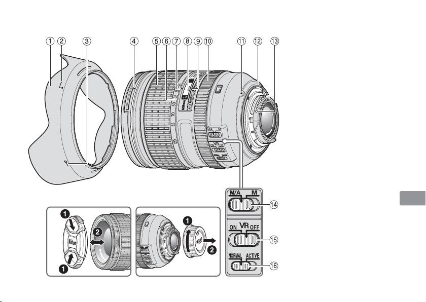 • Některé části konstrukce objektivu jsou zhotoveny z