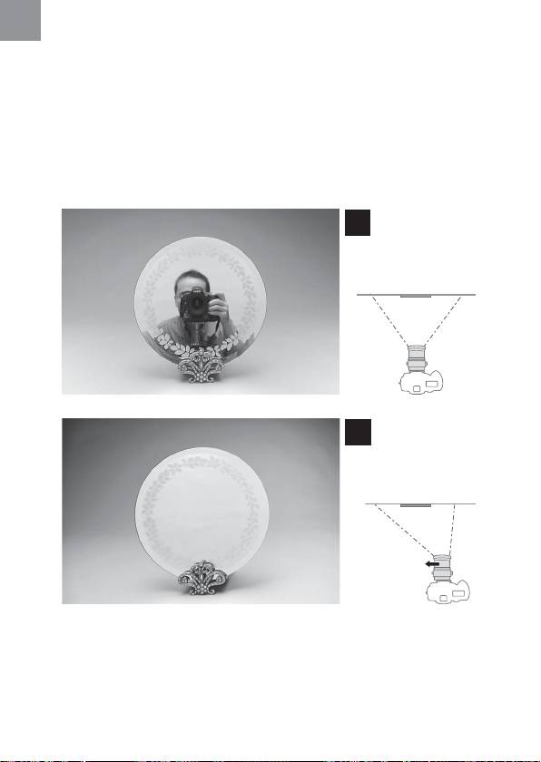 • Without shifting (Photo A): When the lens-to-subject distance