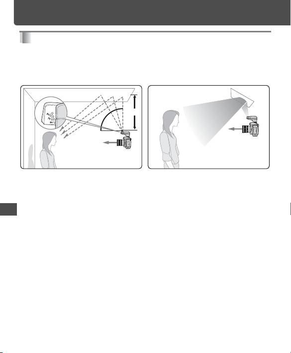 - When the subject has a mottled appearance with the flash light, raise the tilting degree of the flash head. In case the light is not enough