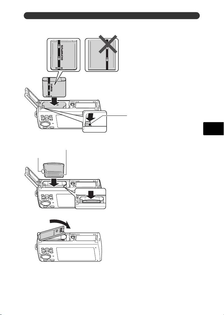 b. Inserte la batería y una tarjeta xD-Picture Card (opcional) en la