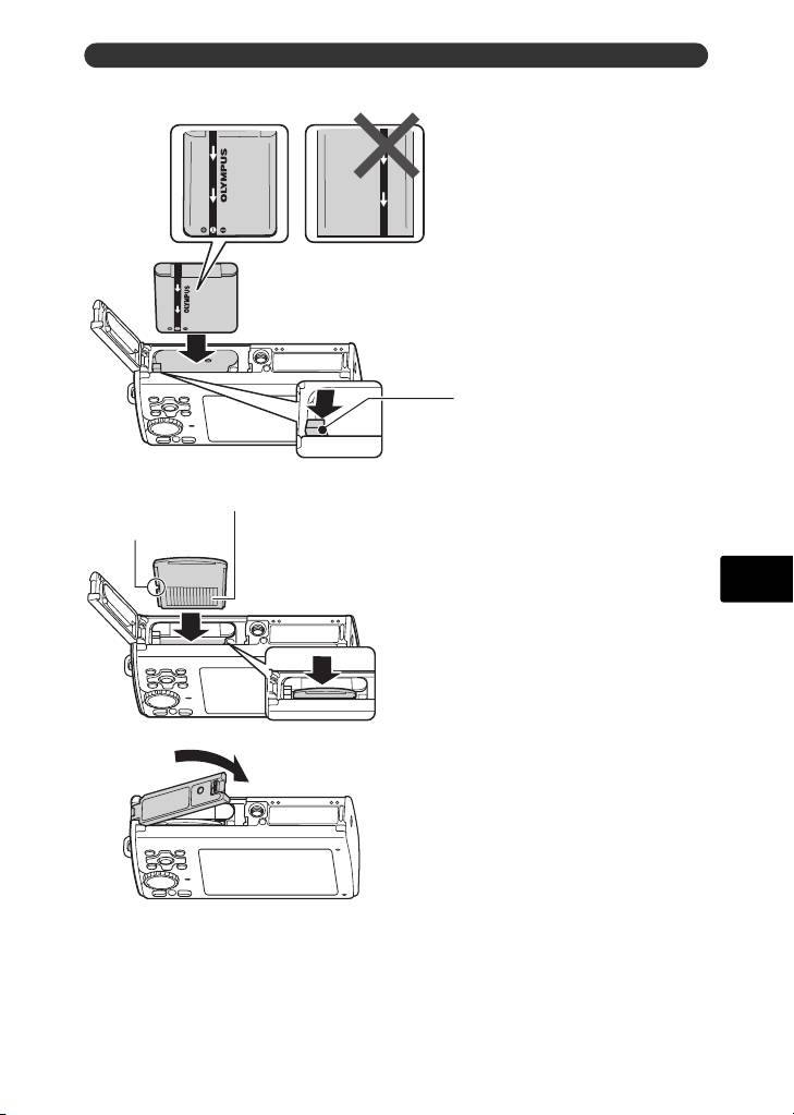 b. Вставьте в фотокамеру аккумулятор и карту xD-Picture Card