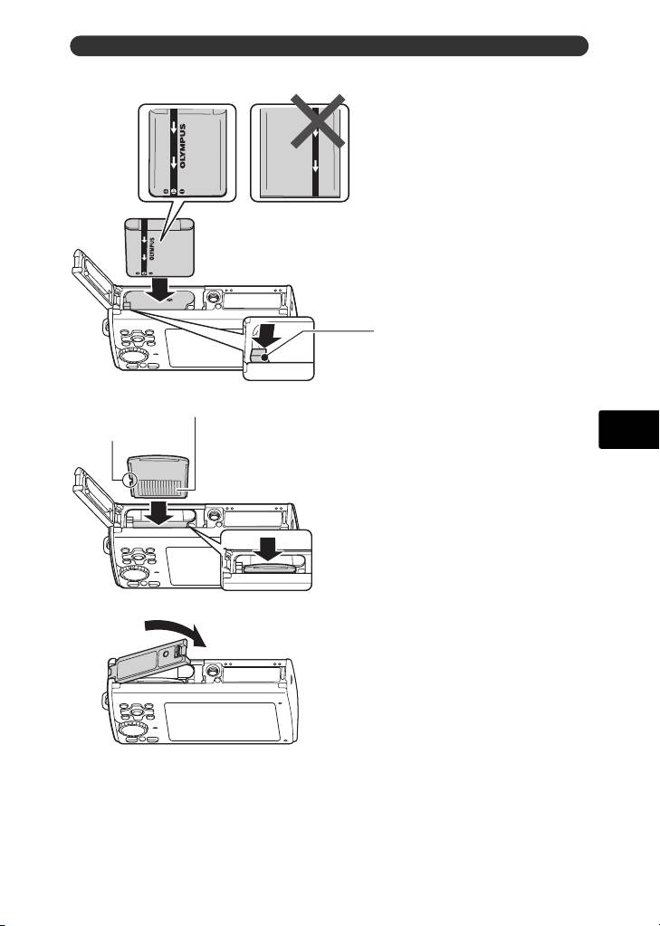 b. Einlegen des Akkus und einer xD-Picture Card (optional) in die