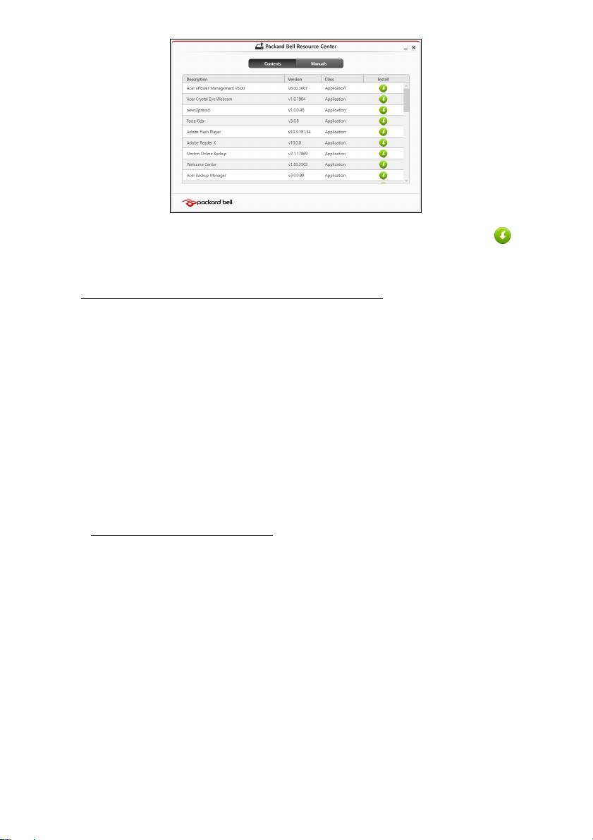 2. Deverá ver a secção Conteúdo do Packard Bell Centro de Recursos.