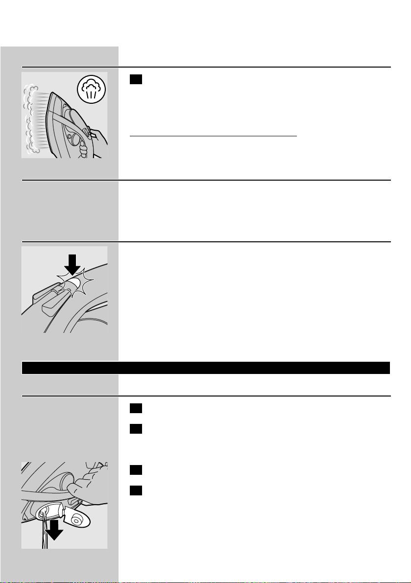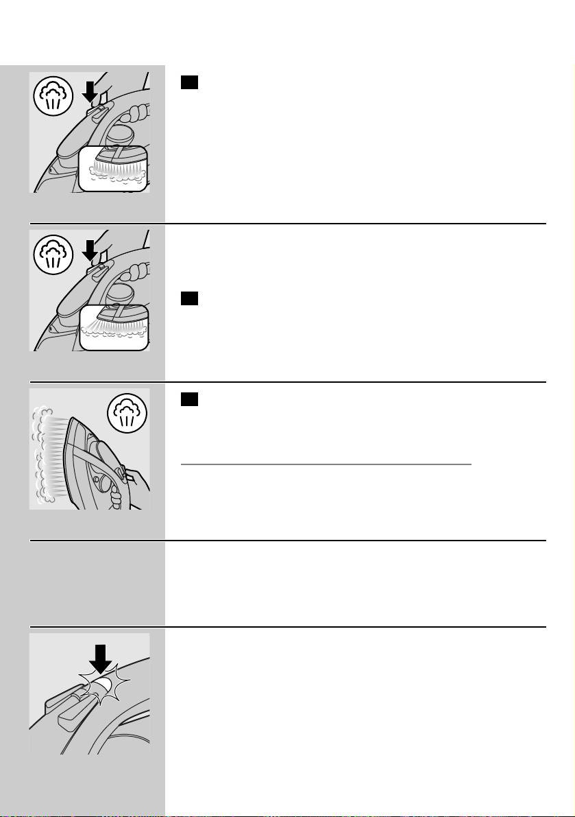 7 Тримаючи праску над умивальником, натисніть та утримуйте