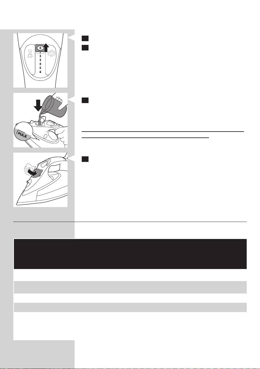 peglanju parom ( 2 do MAX). Postavite peglu