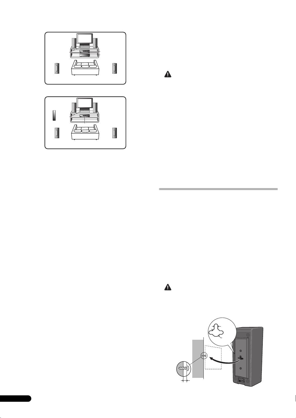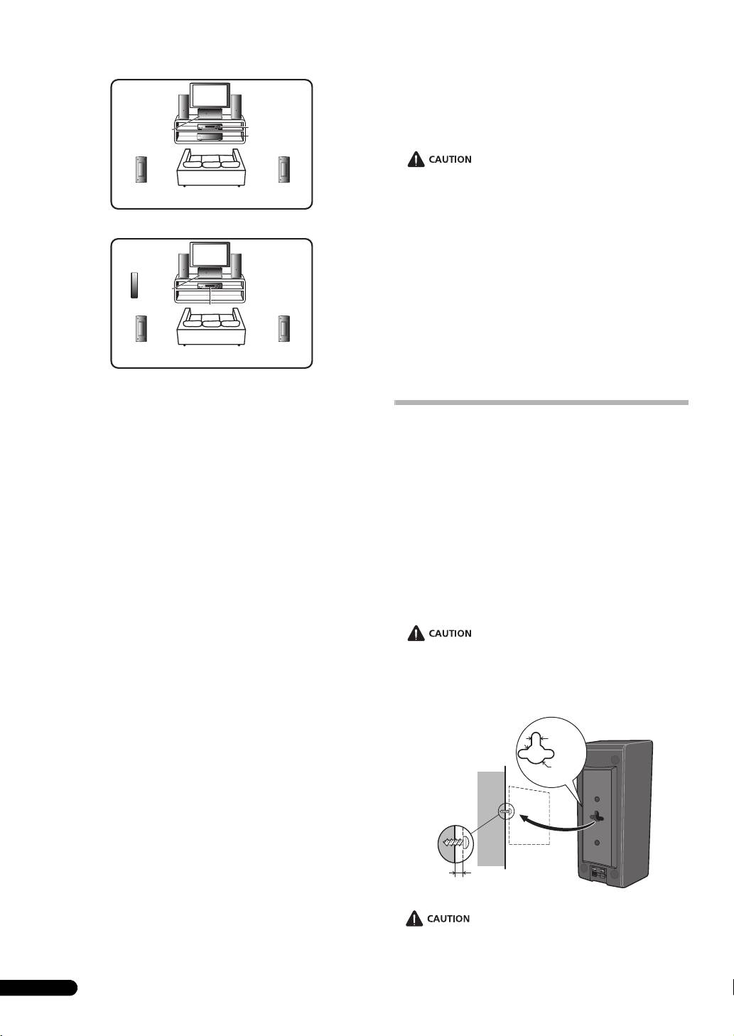 • Do not attach these speakers to the wall or ceiling, as they may