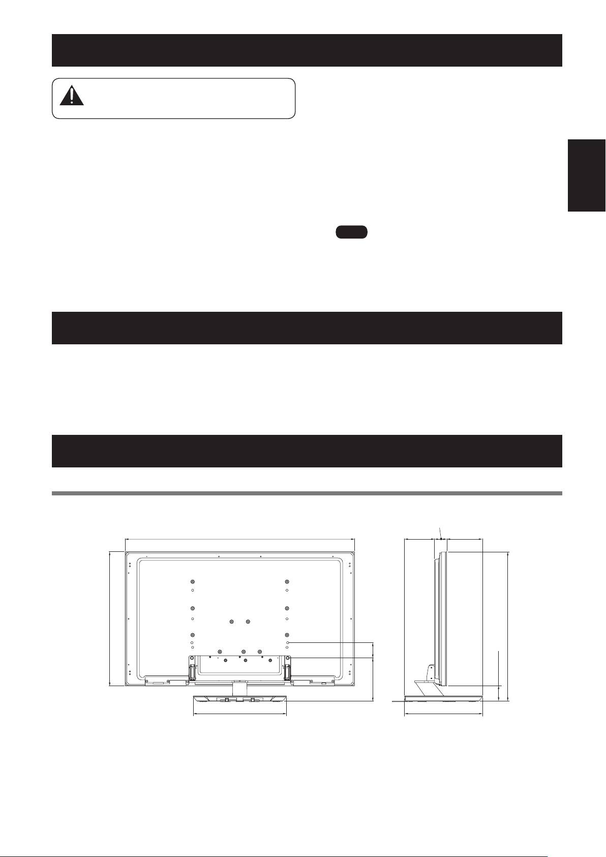 - Dimensions Diagram Detaching the Pioneer Display and Television from the Stand Specifications