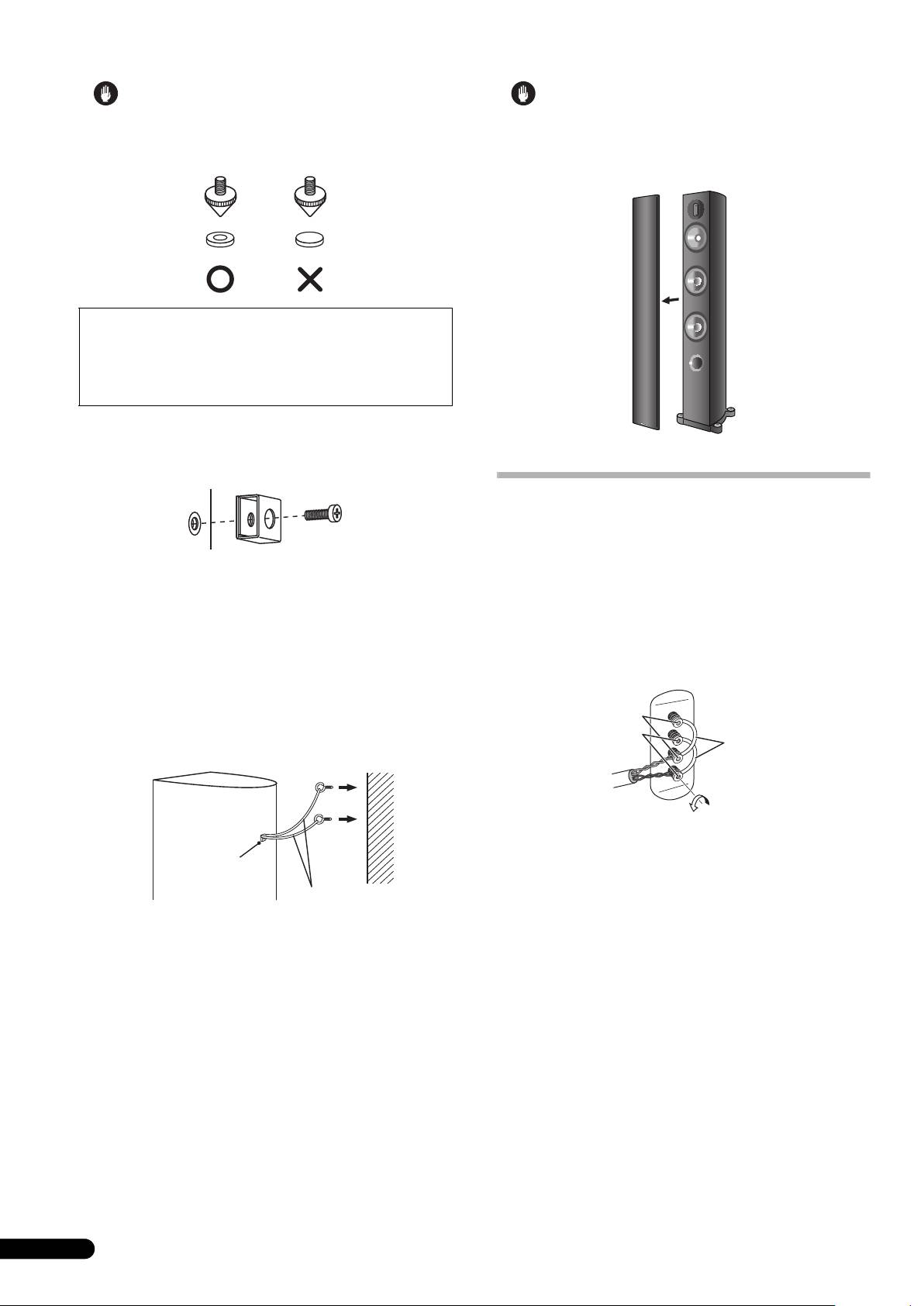 • Do not attach these speakers to the wall or ceiling. They may