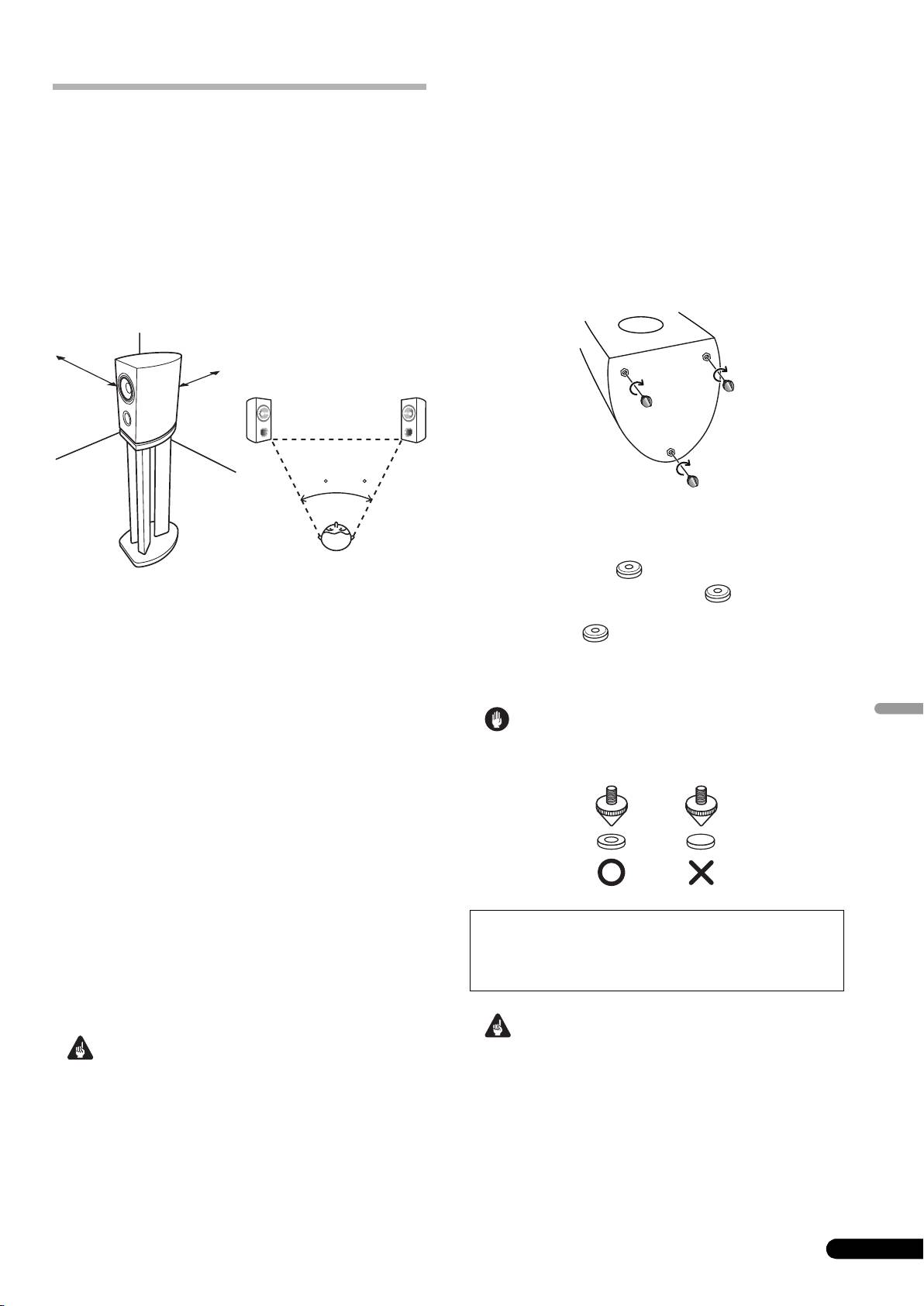 is van de vloer. Als u de luidsprekers direct op de vloer zet,