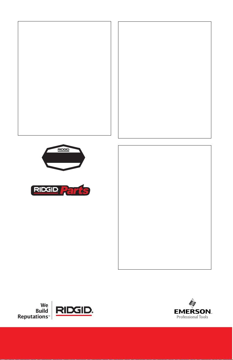 Las herramientas RIDGID están garantizadas contra defectos de la mano de obra y de los ma-