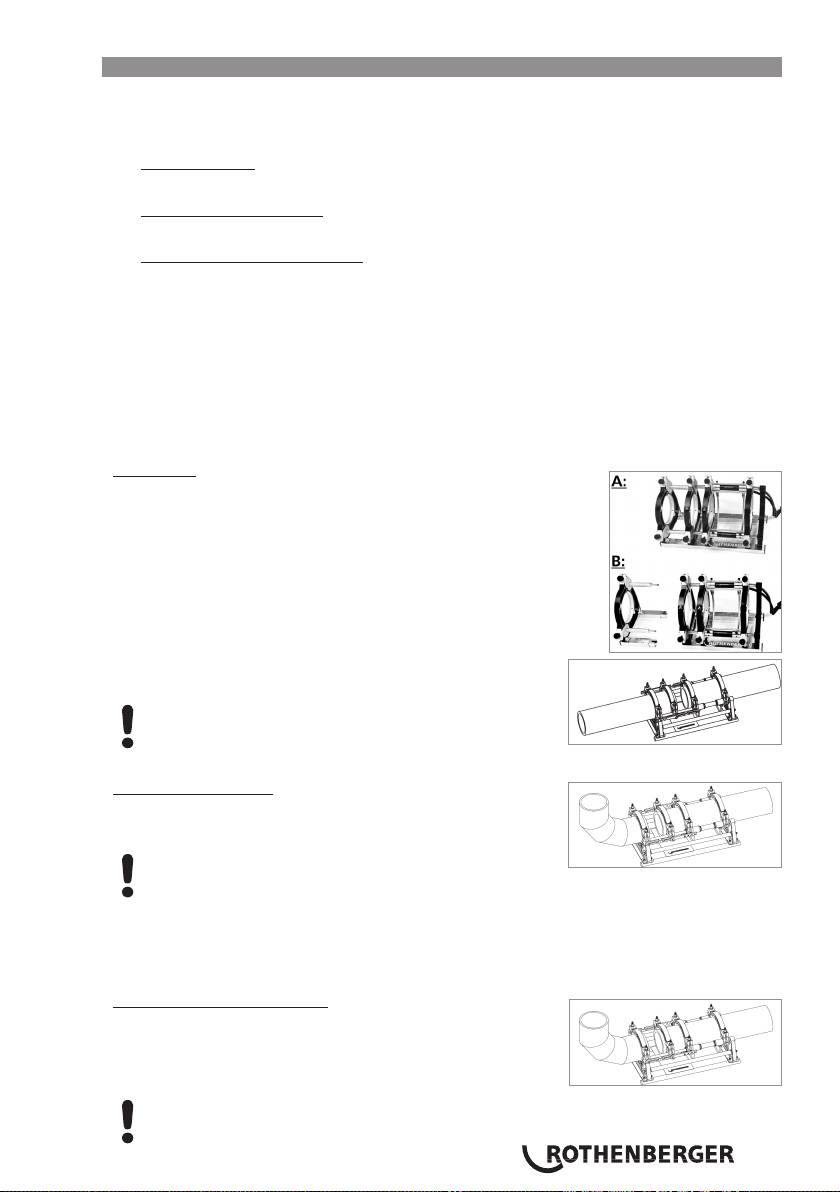 Röret sätts in i tre spännelement, monteringen hålls av ett spännelement. Härmed kan det