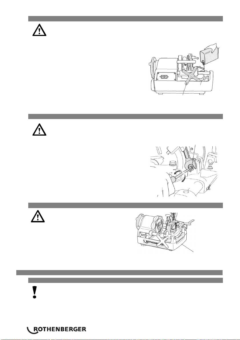 Koppla på maskinen och kontrollera att gängskärningsoljan rinner från