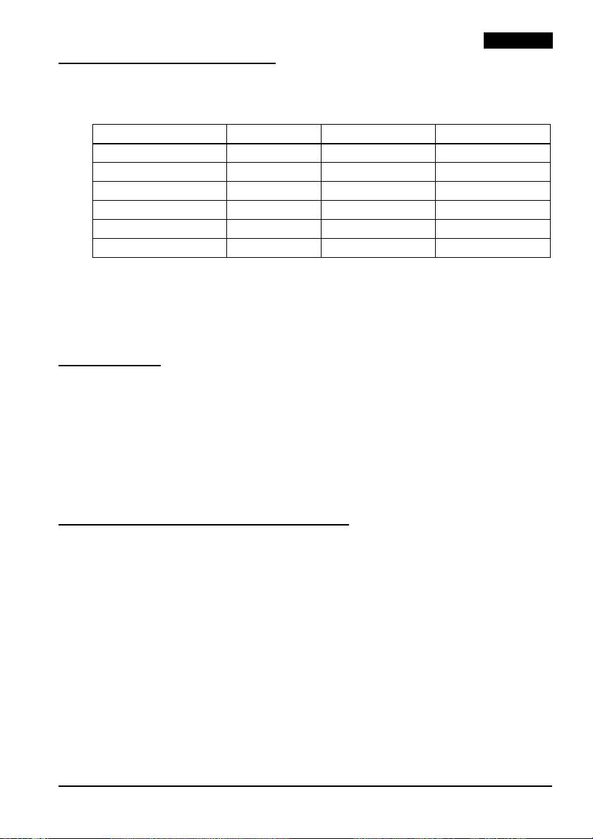 printer, referring to the table below:
