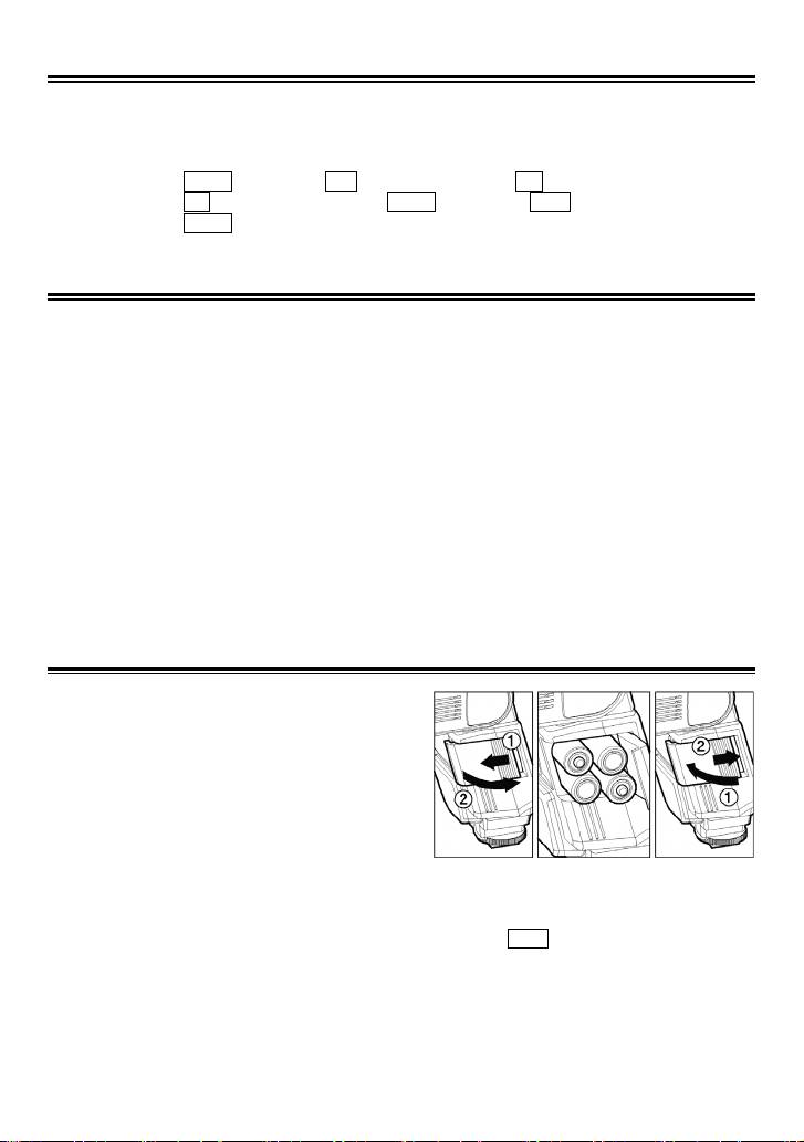 ◆ When the flash will not be used for an extended period of time, remove the batteries from the flash
