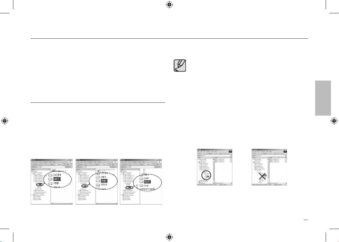 MP3-, PMP- ja TEXT-kansioihin voidaan luoda uusia kansioita.