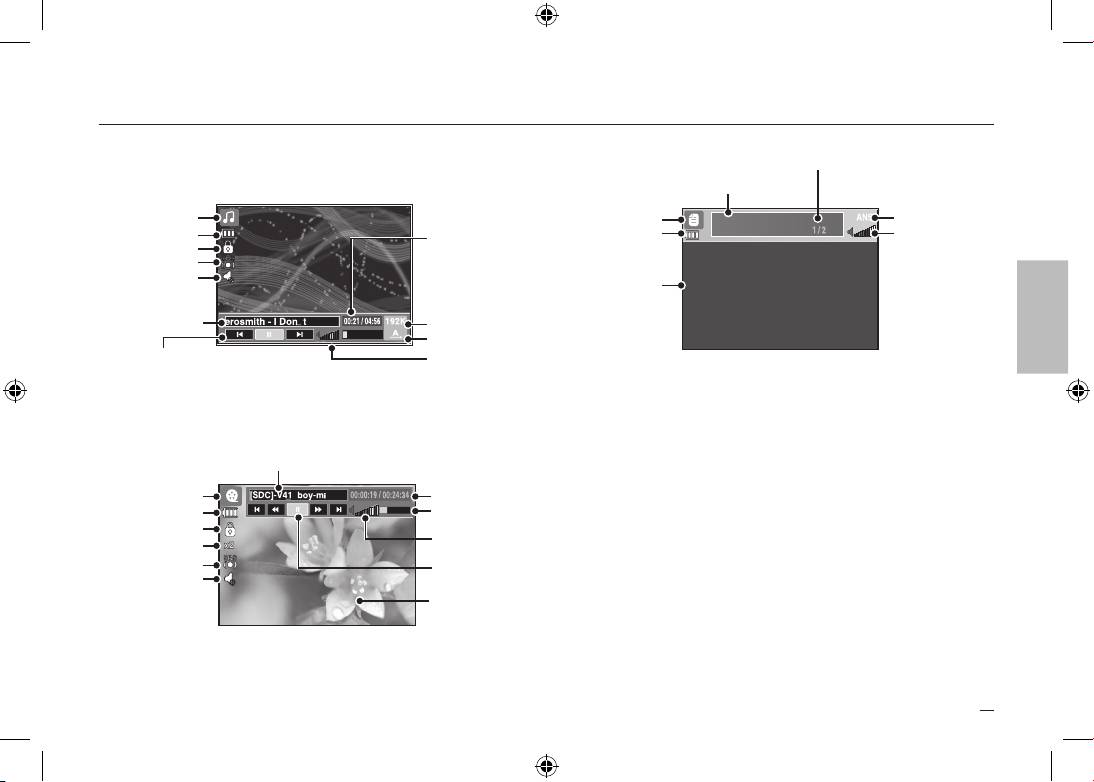 LCD-näytössä on tietoja MP3-, multimedia- ja tekstitiedostosta.