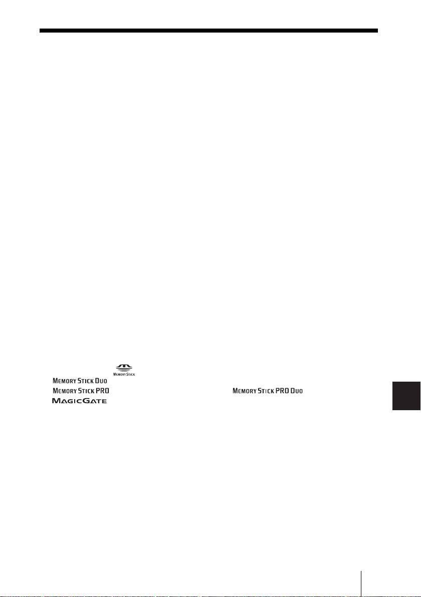 • The following are trademarks of Sony Corporation: