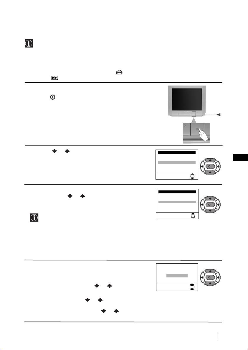 • Plug the TV in and press the button on the front of