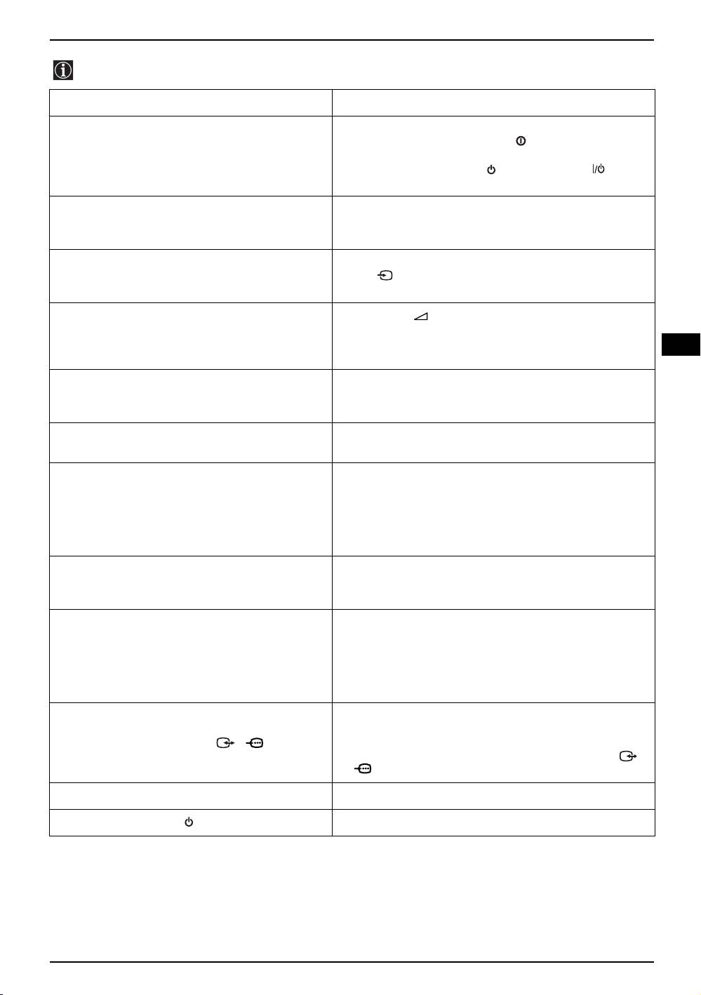 No picture (screen is dark), and no sound. • Check the aerial connection.