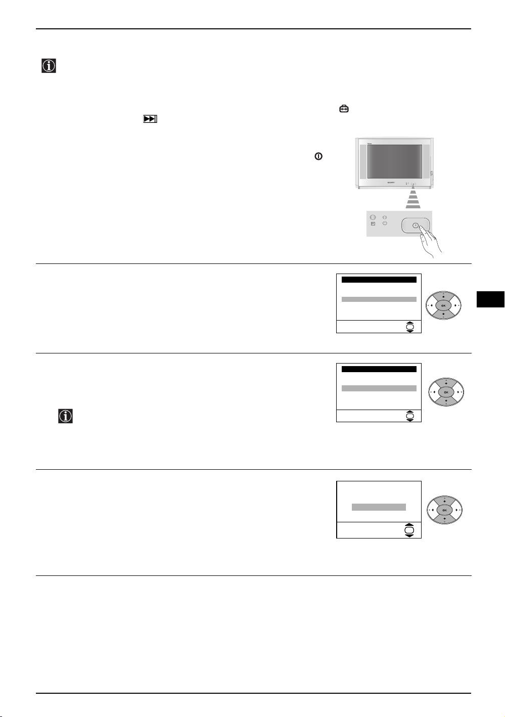 • Plug the TV in and press the button on the front of