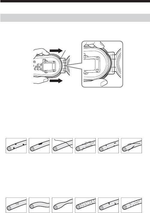 • O링에 갈라짐, 휨, 비틀림, 작은 터짐, 흠집, 모래 박힘 등이 없는지 확인하십시