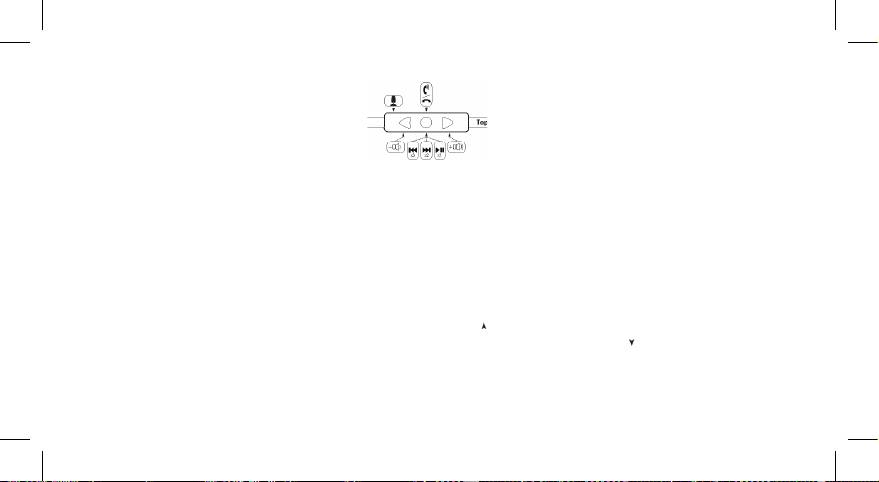 2. Spela eller Pausa - Att spela en låt eller video, tryck på och släpp mittknappen (•) en gång. För att pausa tryck på och släpp mittknappen en gång