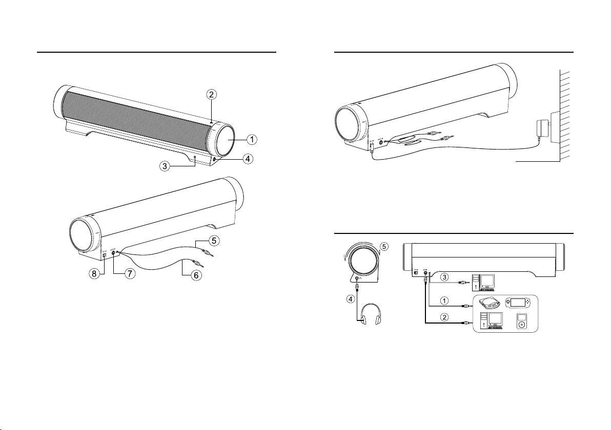 4. Connettore cuffi e stereo da 3,5 mm