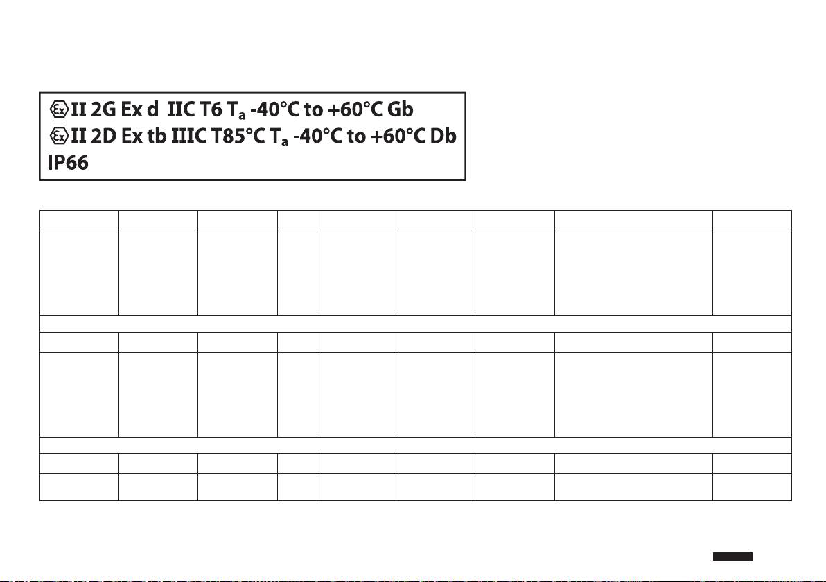 Ex tb ÐÐÐC T85°C Tfi -40°C to +60°C Db
