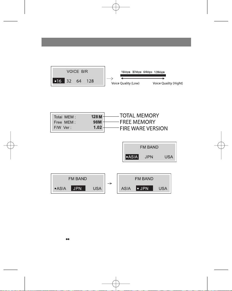 - Choosing the Voice Data Recording Speed Checking the memory level and the operating system version FM Band RECORDING VOICE DATA