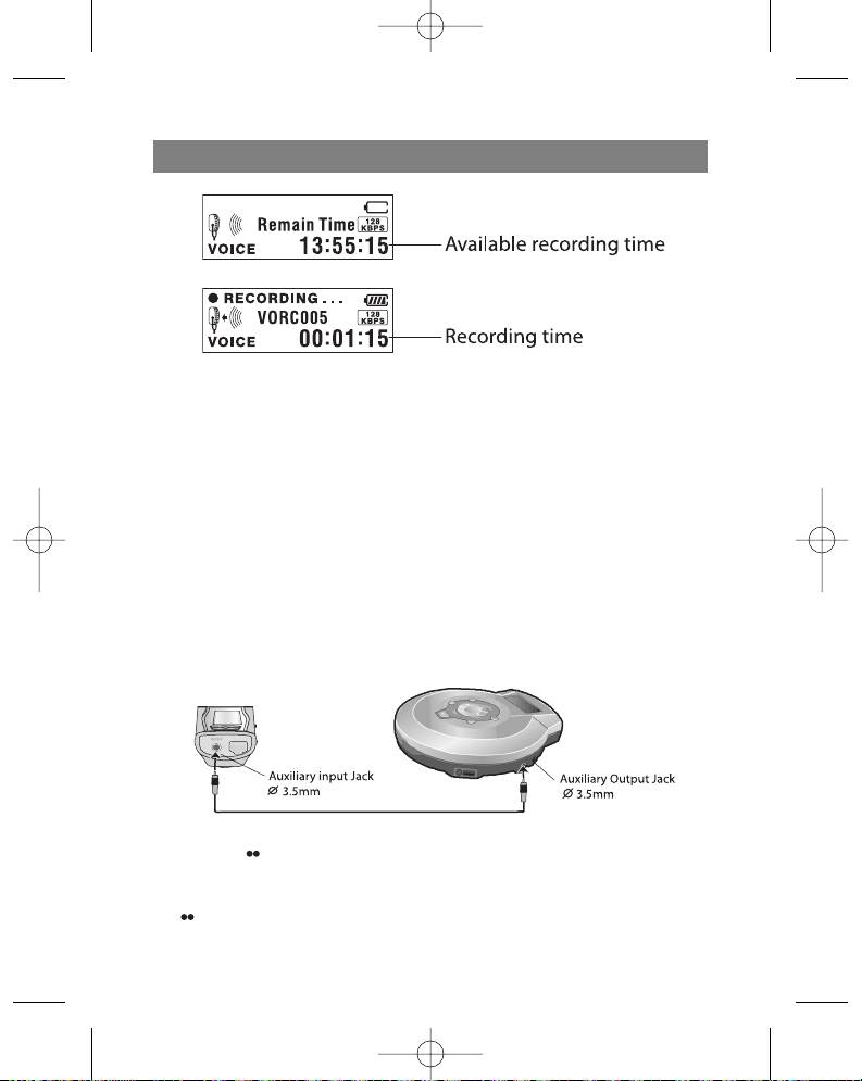 for more than one second. The player will then be ready to record from an auxiliary