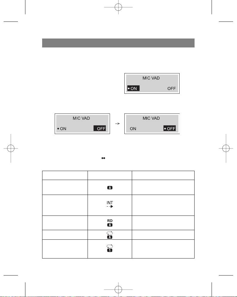 3. Pressen Sie die Taste Menu, um die Betriebsart "MIC VAD" zu verlassen.