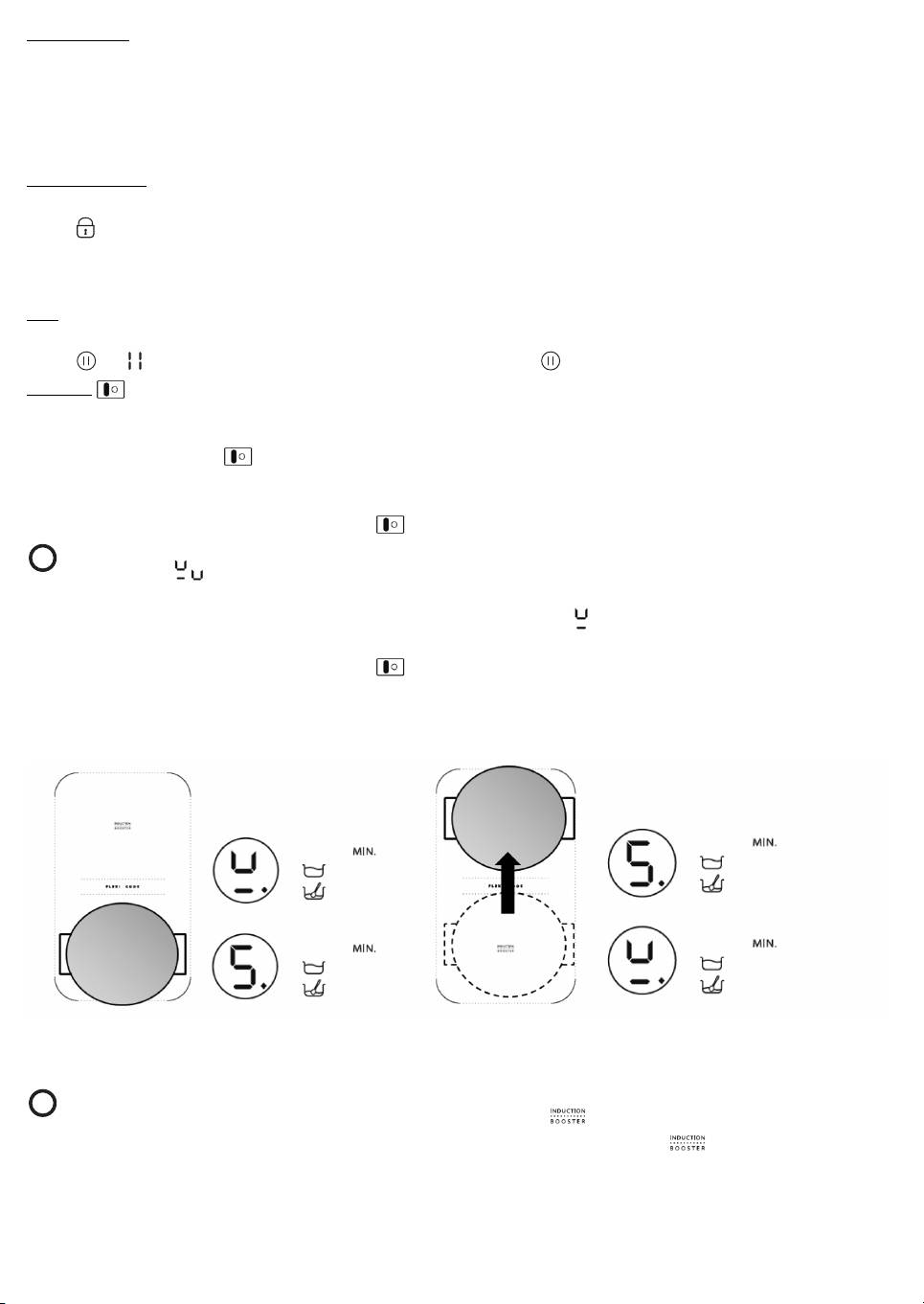When the flexi cook function is selected, the booster and sixth sense functions cannot be used. If the timer is set, it will be displayed alongside the hotplate display