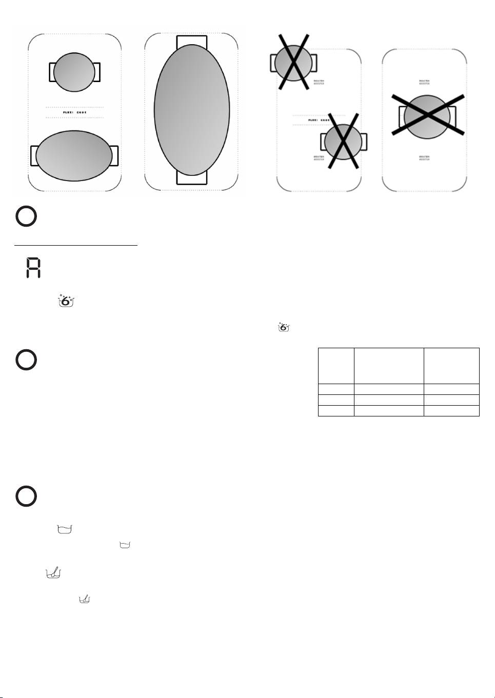 It is also possible to operate the Flexi cook area as two independent cooking zones, using the corresponding button of the single zone. Place the pot in the center of the single