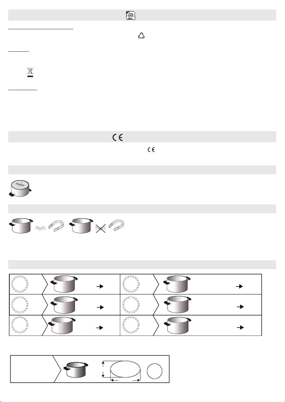 - SAFEGUARDING THE ENVIRONMENT DECLARATION OF CONFORMITY BEFORE USE EXISTING POTS AND PANS RECOMMENDED DIAMETERS OF POT BOTTOMS