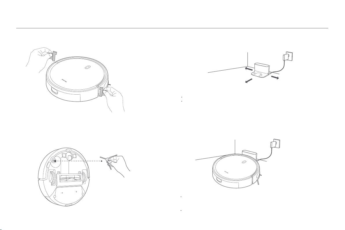 Sortir la brosse latérale et l’installer à la position qui est indiquée sur le