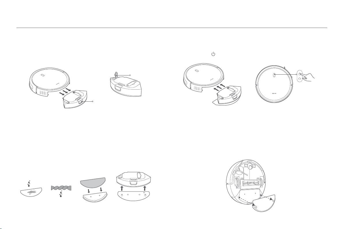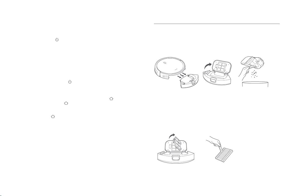 Le robot aspirateur s’allumera automatiquement lorsqu’il sera sur le socle de charge. Il