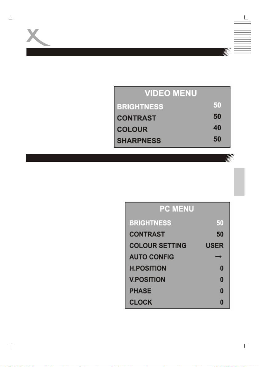 • Le menu VIDEO, si l’appareil est réglé sur TV, AV, S-Vidéo, Péritel, DVD ou DVB-T
