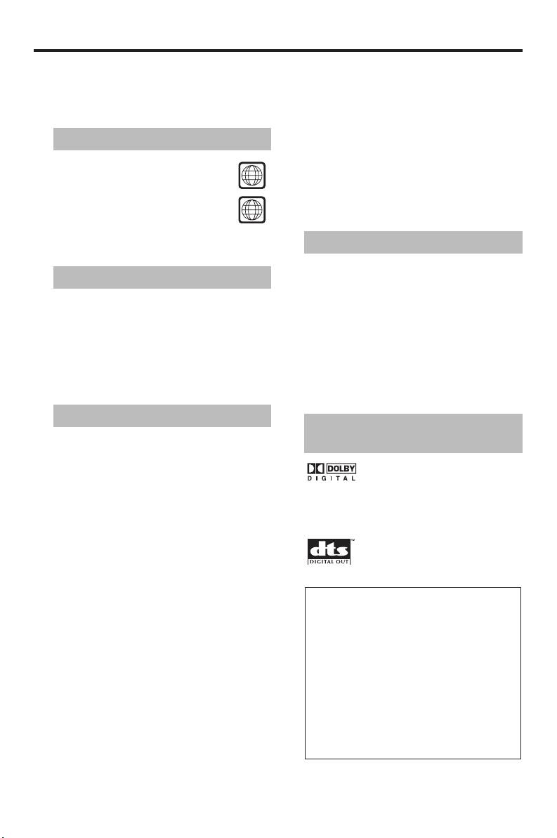 - Introduction Region codes Cleaning discs Supplied accessories Patent information Notes on discs