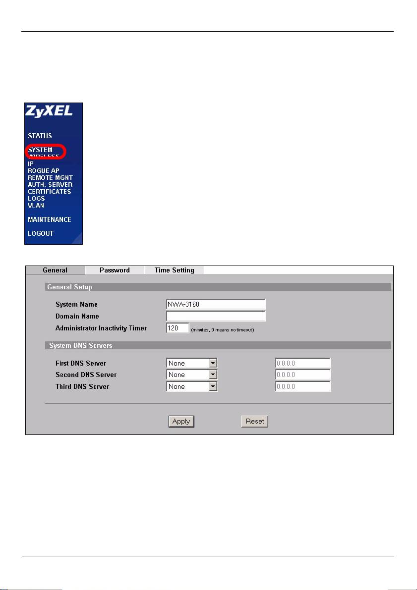 2 Das Fenster SYSTEM > General (System > Allgemein) erscheint.