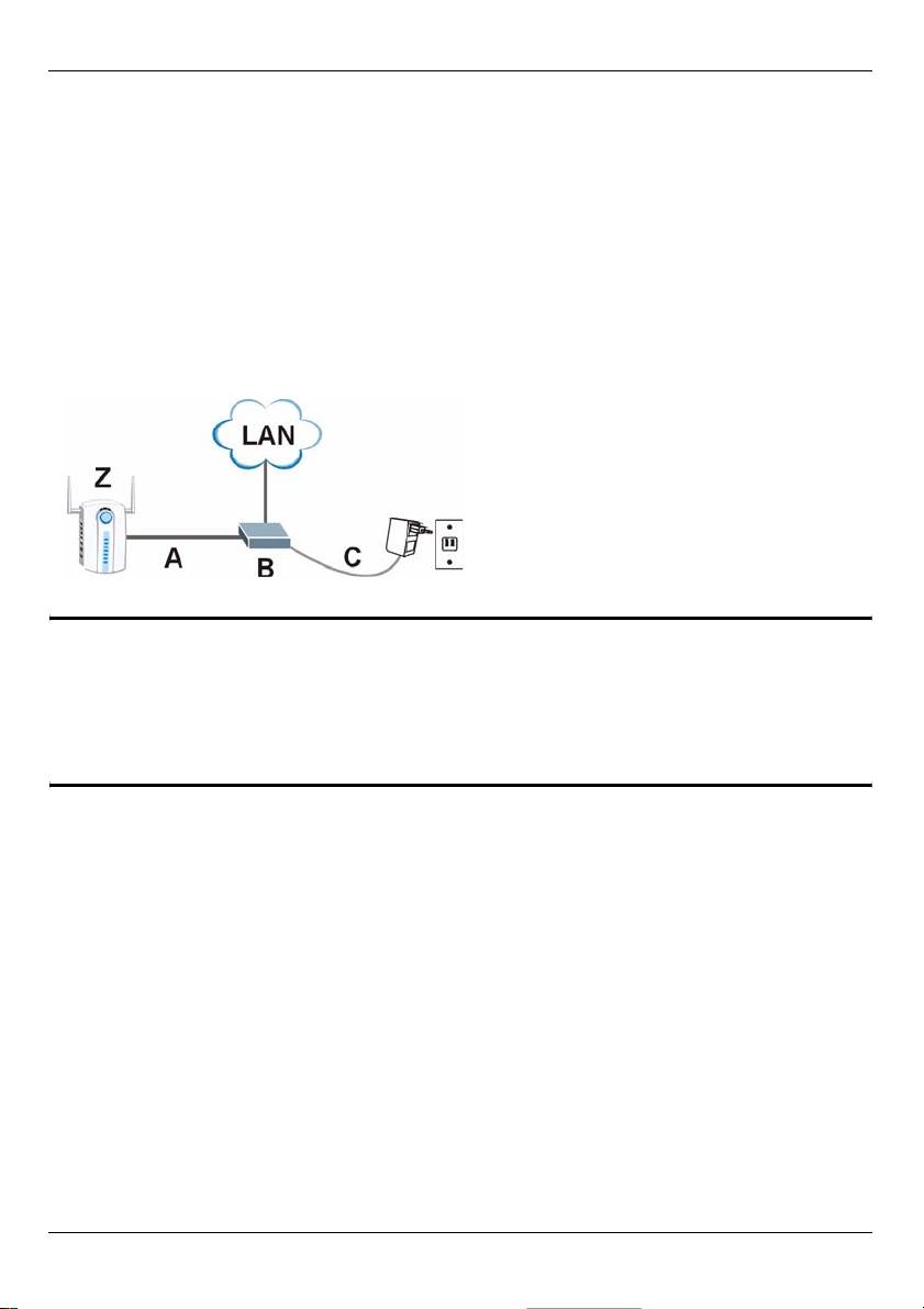 На нижеприведенной иллюстрации: Z - это ваше NWA, A - это кабель CAT 5 Ethernet,