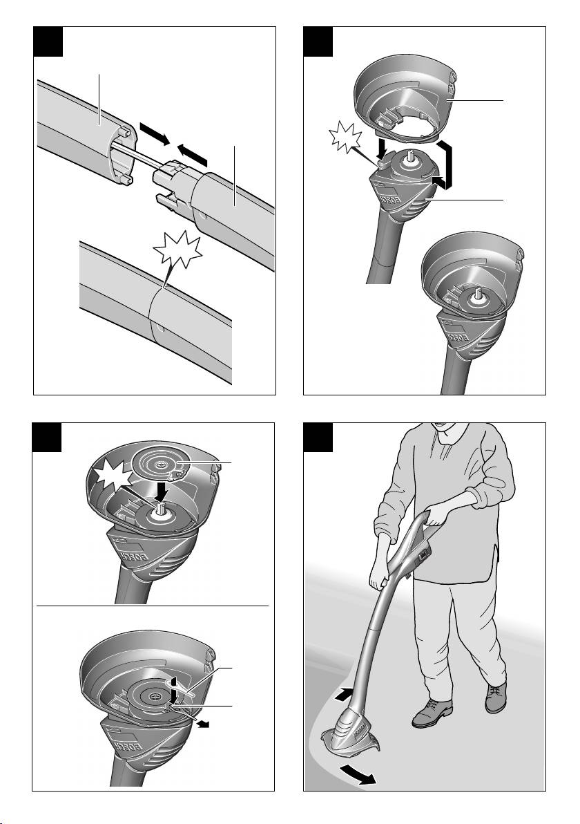 ➊ Accrocher le capot de protection sur la tête du