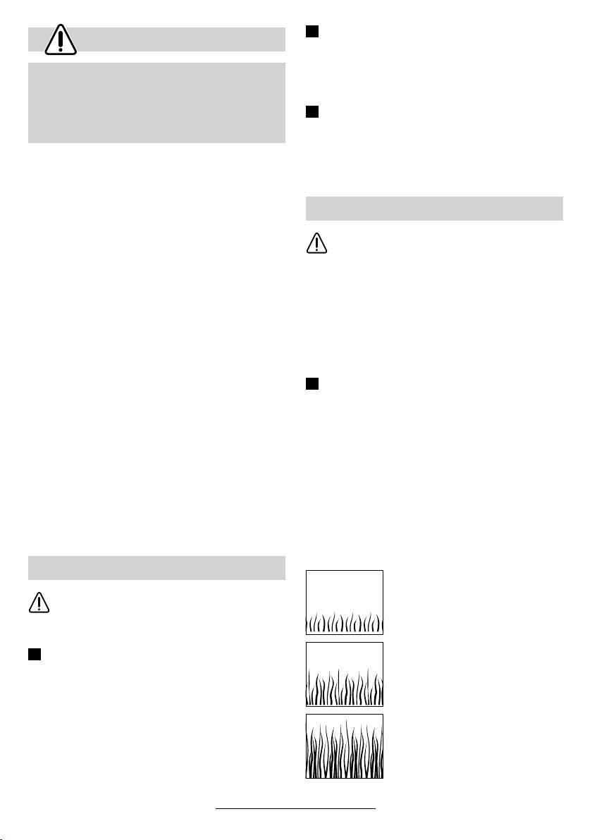 15 cm. Lorsque le gazon est plus haut, effectuer plu-