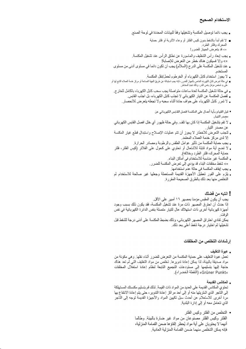 Bei Weitergabe des Staubsaugers an Dritte bitte