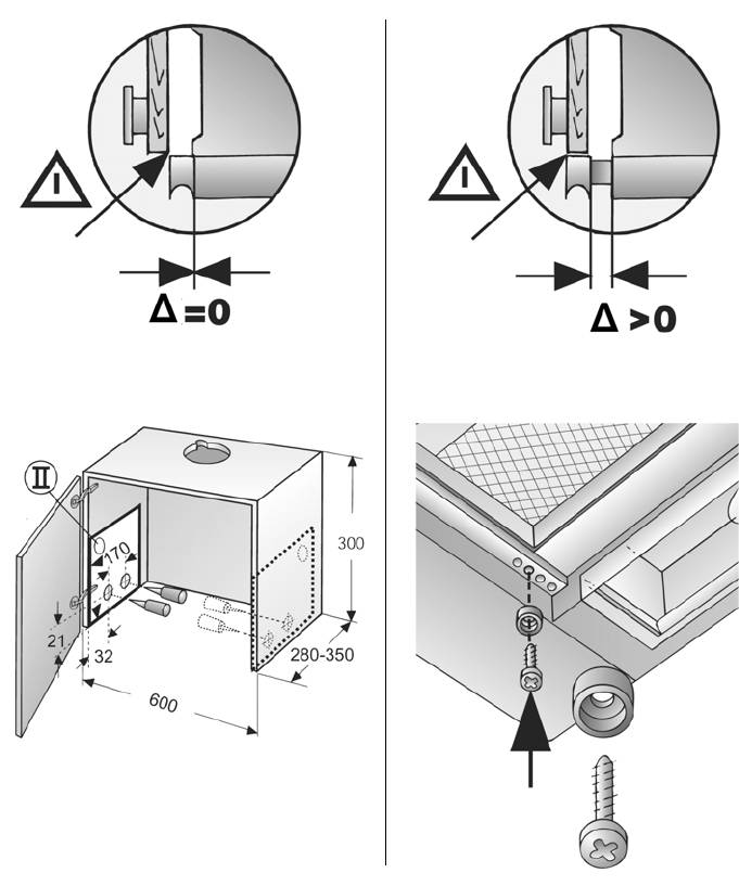 Указание. Корпус вытяжки внутри основно