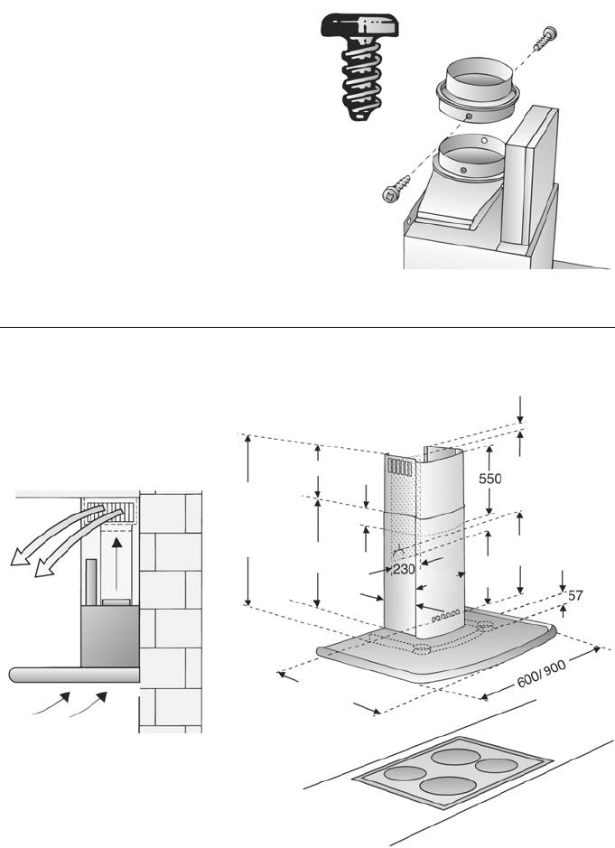 вытяжной трубы вверх и привинтите бо