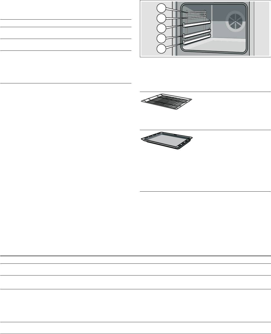 Блюдо Принадлежности Уровень Вид нагрева Режим гриля Время