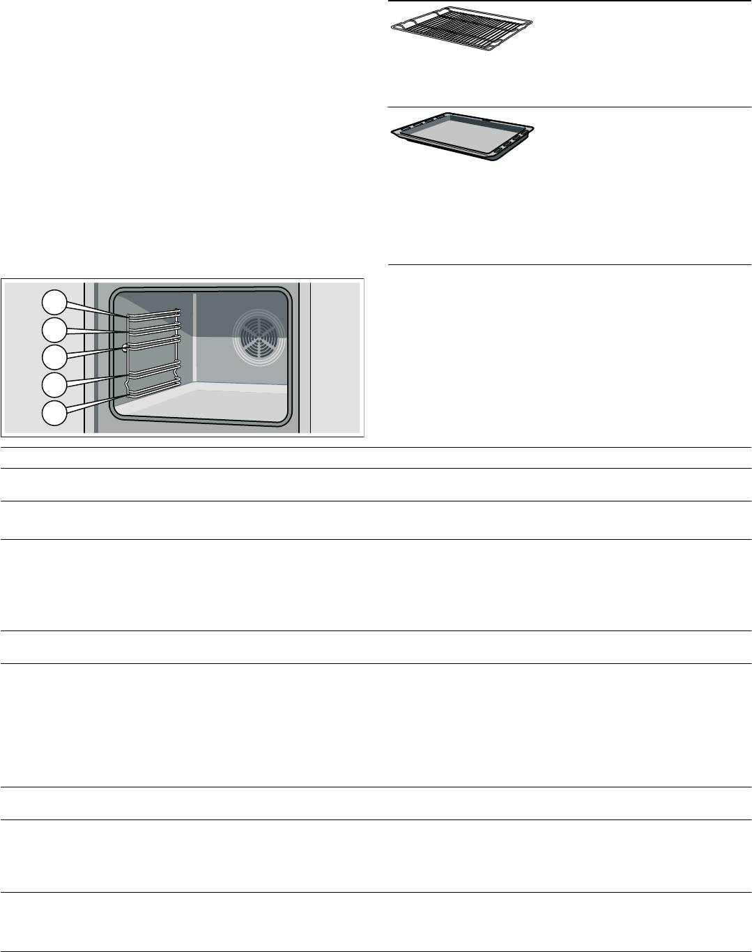 Блюдо Принадлежности Уровень Вид нагрева Режим гриля Время