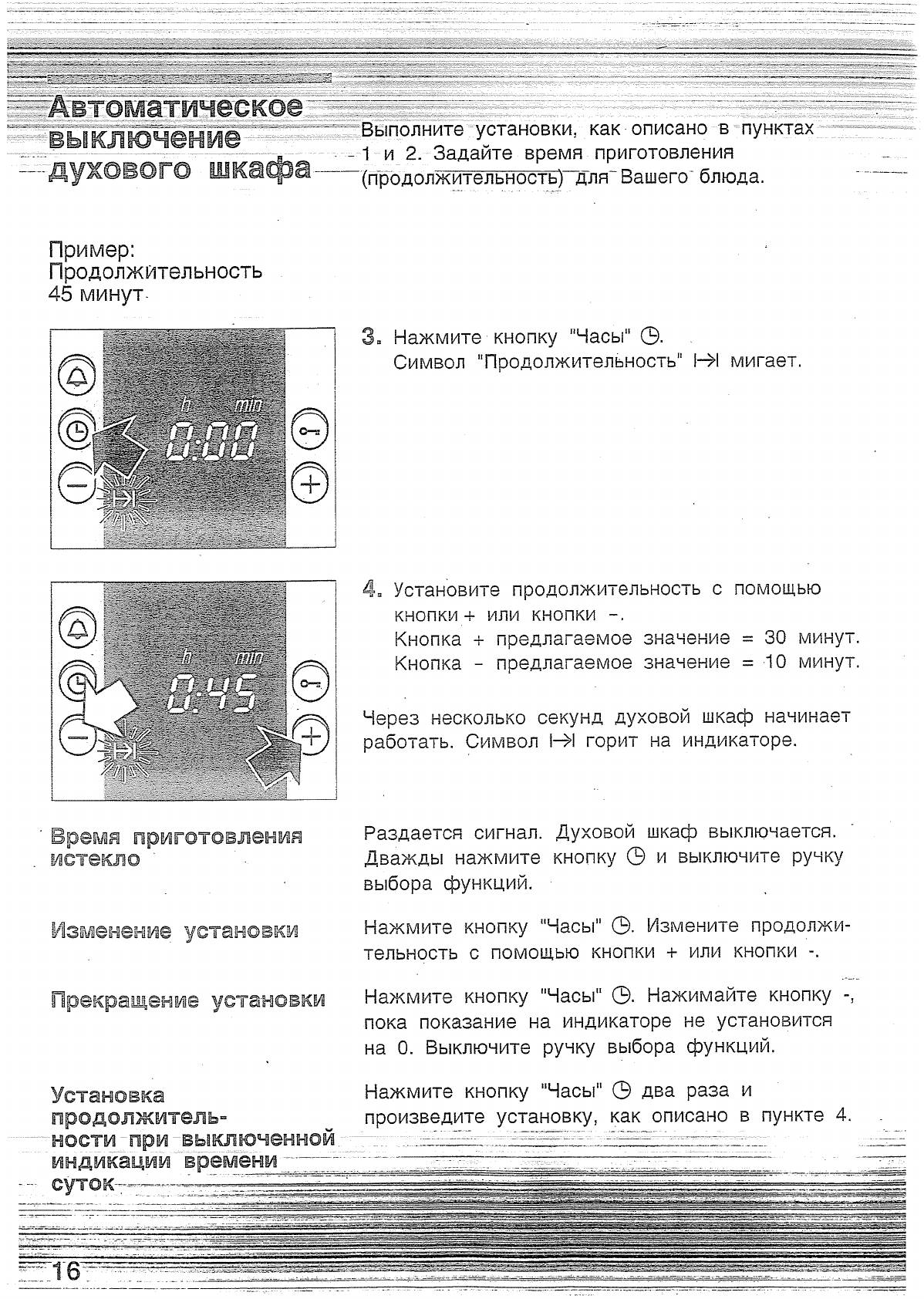 Режимы работы духовки: